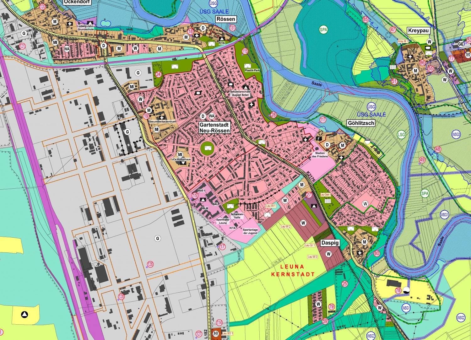 Zur Vorbereitung der Erstellung des neuen gesamtstädtischen Flächennutzungsplans wurde durch uns ein Stadtentwicklungskonzept erarbeitet, in welchem ein in die Zukunft gerichtetes Leitbild der Stadtentwicklung für die Stadt Leuna festgeschrieben wurde. Darauf aufbauend haben wir ein Integriertes Gemeindliches Entwicklungskonzept erarbeitet. Das IGEK stellt die Grundlage für eine zukünftige Entwicklung der Region dar. Die dabei identifizierten Rahmenbedingungen sowie die in Beschlüssen des Stadtrats festgelegten Entwicklungsziele zur Schärfung des Profils der Stadt Leuna wurden bei der Erarbeitung des neuen gesamtstädtischen Flächennutzungsplans durch uns zugrunde gelegt.