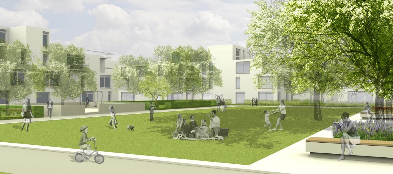 In dem städtebaulichen-landschaftsplanerischen Wettbewerb für die Nachnutzung des ca. 37 ha großen ehemaligen Kasernenareals der Prinz-Eigen-Kaserne in der Landeshauptstadt München haben wir gemeinsam mit Weidinger Landschaftsarchitekten den 1. Preis erhalten. Unser Entwurf sieht die Entwicklung von 1.600 Wohnungen, die durch gemischte Nutzungsstrukturen sowie Einrichtungen der sozialen Infrastruktur bei einer BGF von insgesamt 180.000 qm ergänzt werden, vor. Ausdifferenzierte öffentliche Freiräume – Stadtgärten und landschaftliche Parks – binden die neuen Quartiere zusammen.