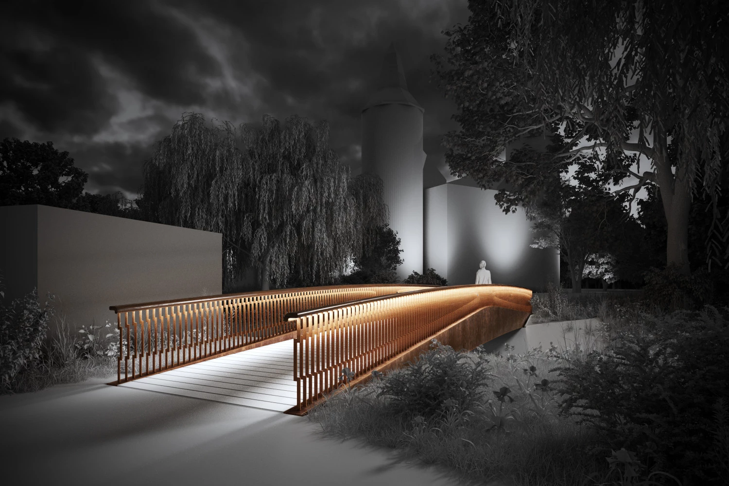 Mit der Realisierung der neuen Brückenbauwerke und den damit verbundenen Wegeverbindungen in den Schlosspark sowie der Anbindung an die Innenstadt gewinnt Stadt Bedburg neue Aufenthaltsqualitäten in diesen Bereichen.