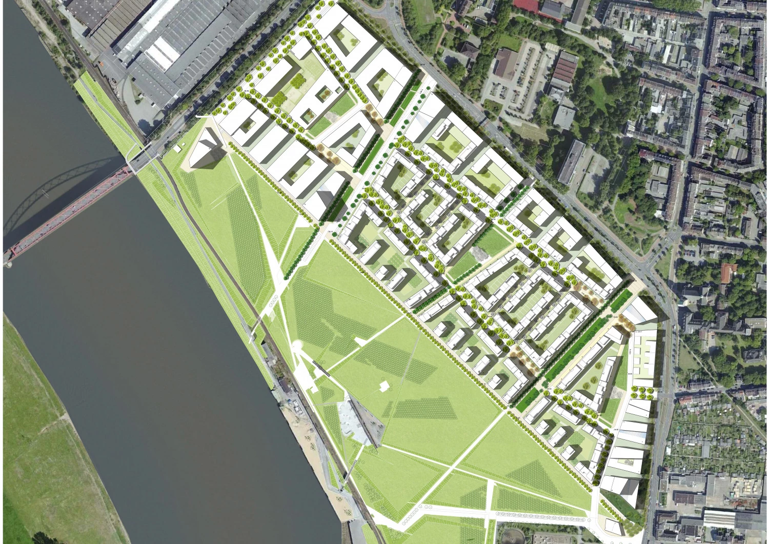 Nach über 150 Jahren schwerindustrieller Nutzung wird das unmittelbar am neuen Rheinpark gelegene Gelände des Drahtwerks in Duisburg-Hochfeld für eine neue Nutzung frei. Die Stadt Duisburg hat einen Masterplan für die Konversion des über 30 ha großen Areals beschlossen, das zukünftig als Standort für urbanes Wohnen in Rheinnähe sowie innovatives Gewerbe neue Impulse für den Stadtteil Hochfeld geben soll.